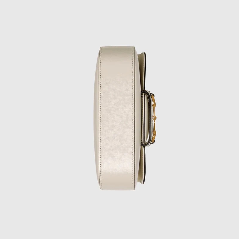 Petite versions of the Gucci Horsebit 1955 add a hybrid twist to the vintage inspired line. Enriched with two different shoulder straps, the black leather mini bag’s character transforms from understated elegance with a tonal leather strap to a strong logo feel thanks to a red and green Web option.