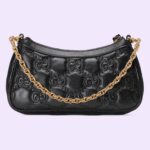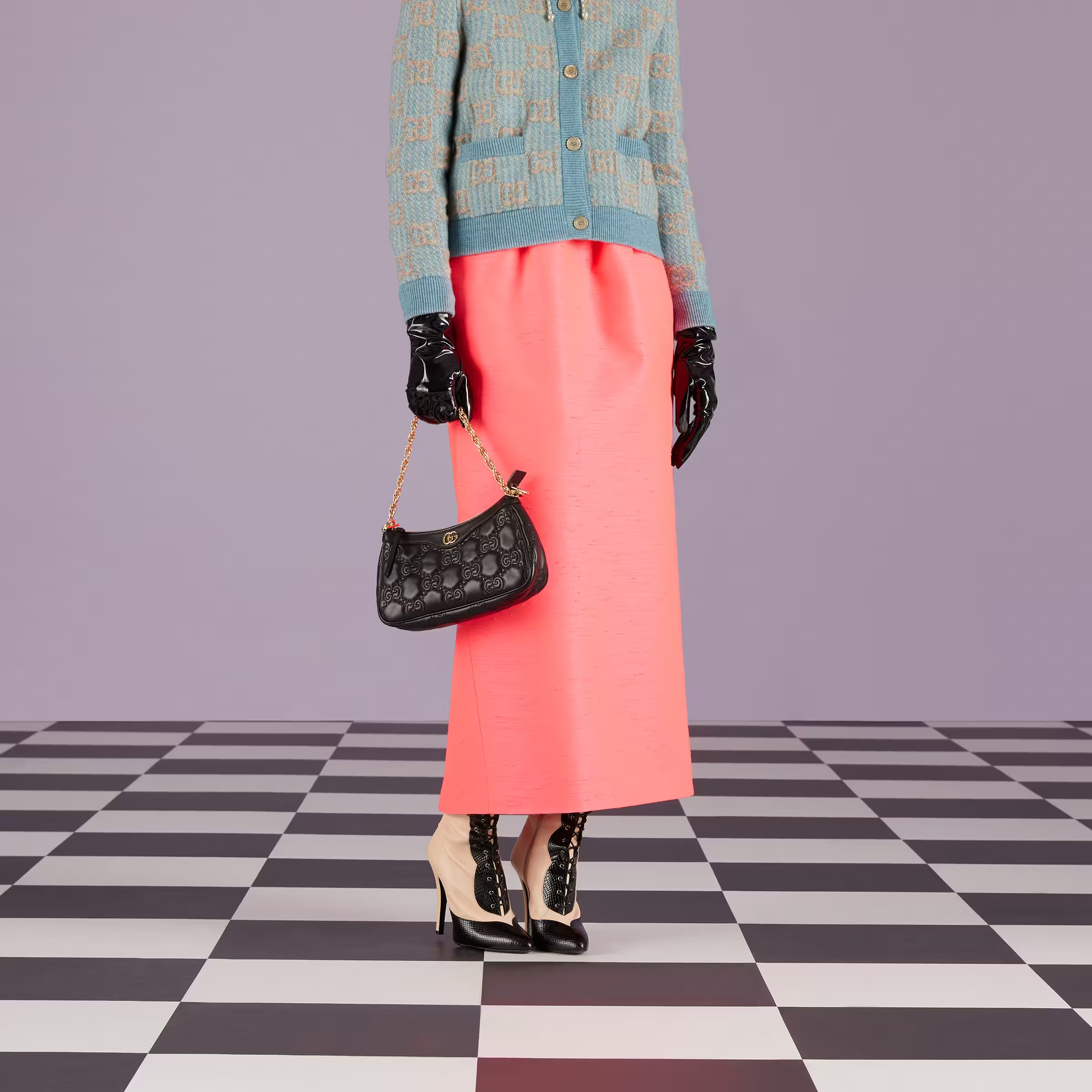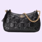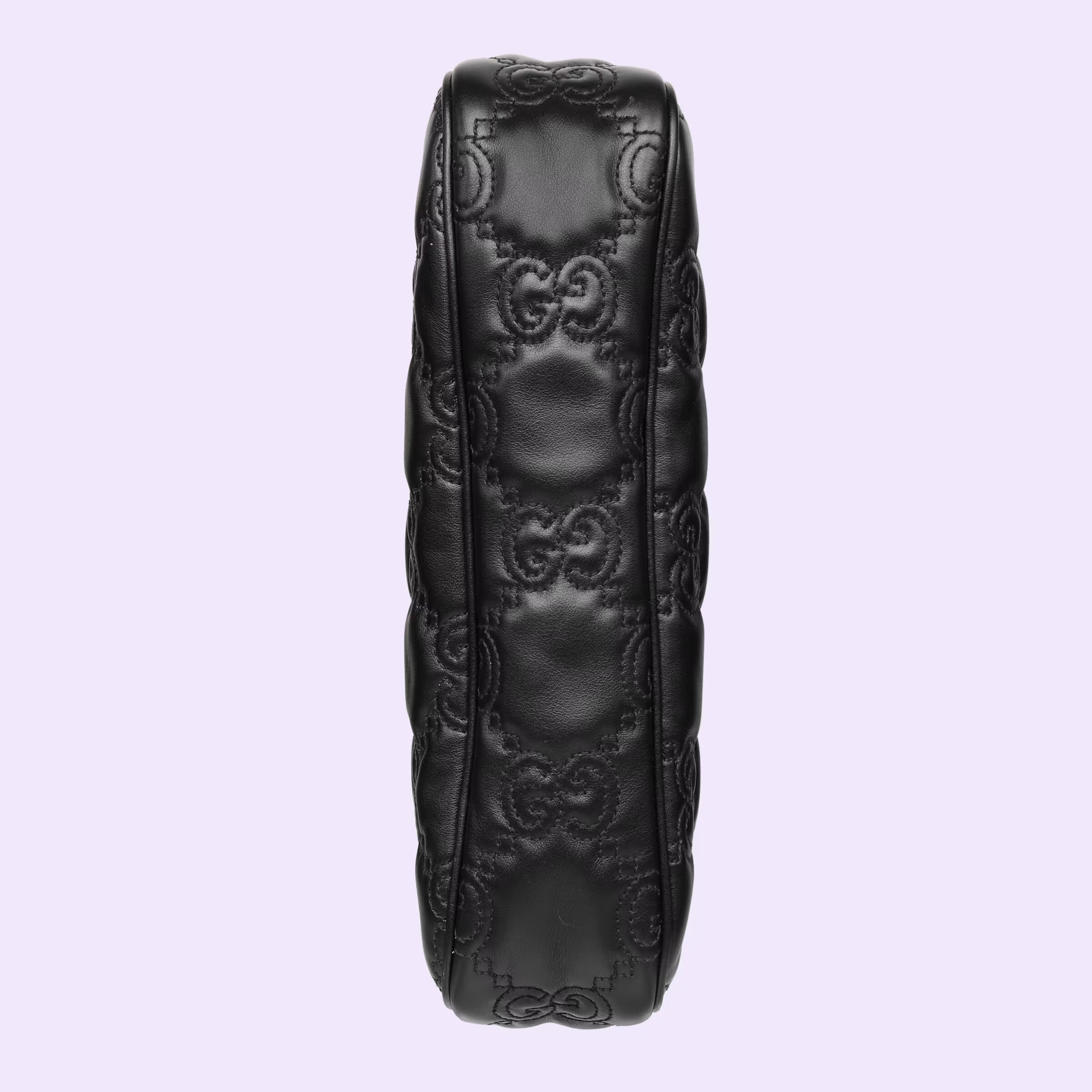 Matelassé leather is a signature material of the House, thanks to its super soft finish. The textured GG motif defines a selection of handbags, including this black leather bag. The Double G hardware decorates the front, continuing the logo feel of the design.