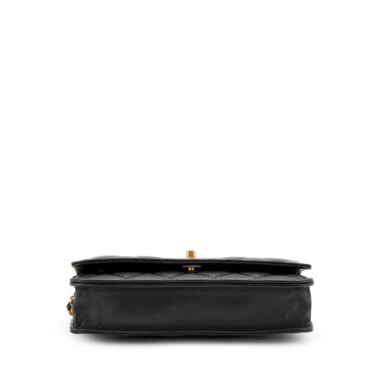 Black Quilted Lambskin Pearl Crush Wallet on Chain Gold Hardware
