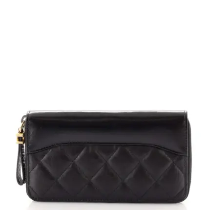 Chanel Black Quilted Lambskin Pearl Crush Wallet on Chain Gold Hardware,