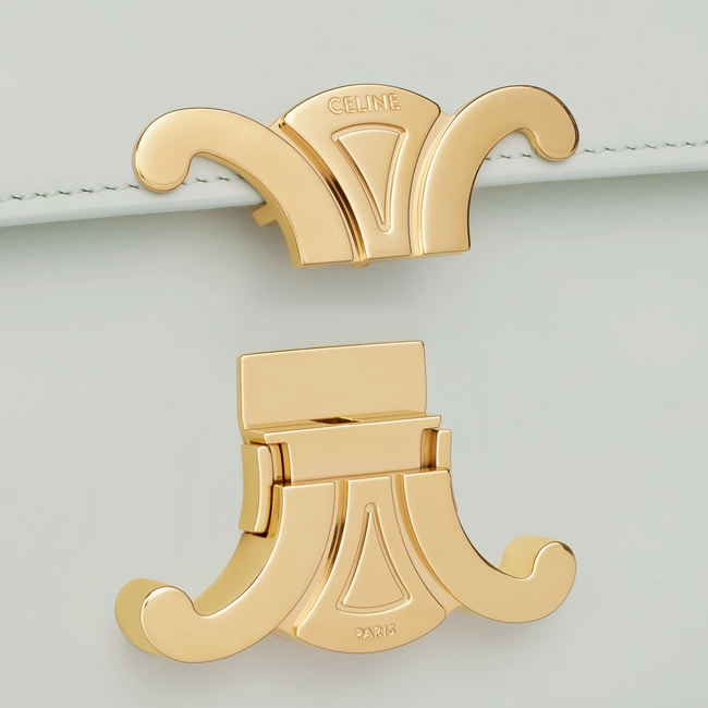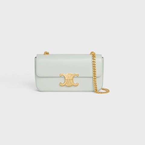 CHAIN SHOULDER BAG TRIOMPHE IN SHINY CALFSKIN JADE