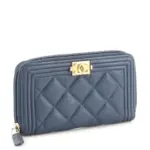Chanel Boy Zip Around Wallet Quilted Caviar Small