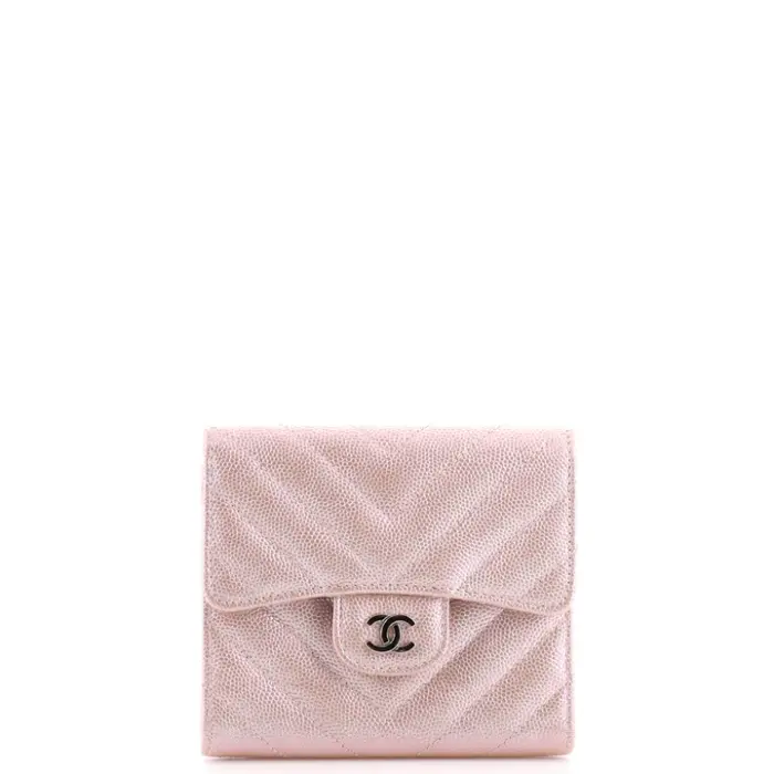 Chanel CC Compact Classic Flap Wallet Chevron Caviar