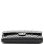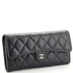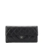 Chanel CC Gusset Classic Flap Wallet Quilted Caviar Long