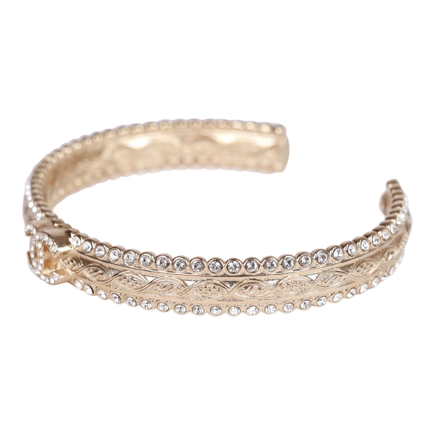 Chanel Crystal Manchette CC Gold Cuff Bracelet