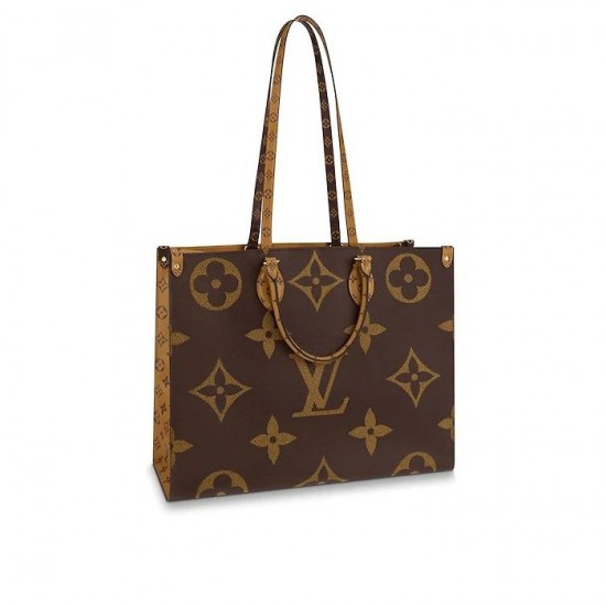 Fashioned from Monogram Giant canvas, the Onthego tote bag is as striking as it is practical. A Monogram Reverse pattern on the sides and handles creates a stylish contrast in color and scale. With its generous capacity, removable shoulder straps and iconic Toron top handles, this versatile GM model is an ideal bag for everyday wear.