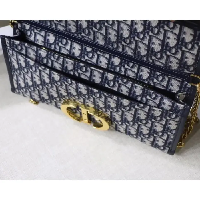 Introducing the stunning Christian Dior 30 Montaigne Jacquard Canvas Clutch Bag M9206, available in a convenient size of 27.5 x 12 x 2 cm. Made with Dior Oblique jacquard canvas, this clutch bag features a chic CD clasp and comes with a detachable chain for versatile styling options.