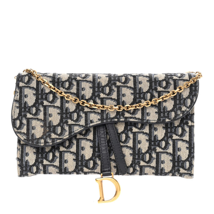 CHRISTIAN DIOR Oblique Saddle Chain Long Wallet Blue