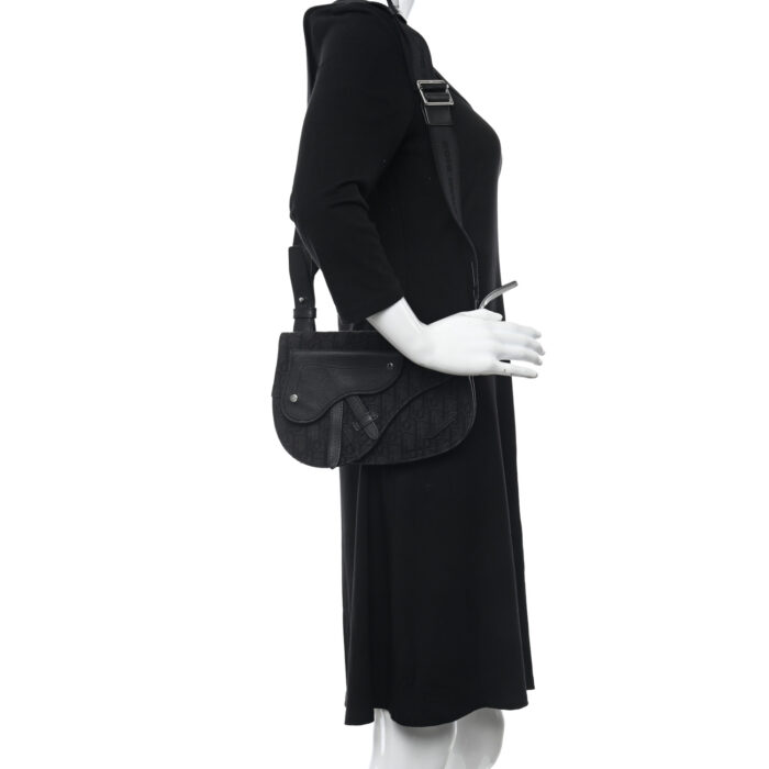 CHRISTIAN DIOR Oblique Saddle Messenger Bag Blue Black