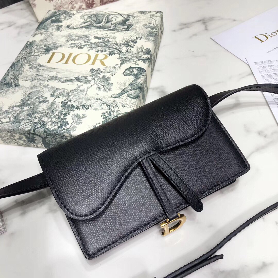 Dior Black Calfskin Saddle Belt Bag