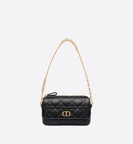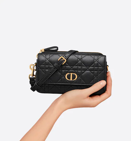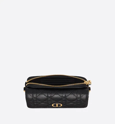 The Dior Caro pouch is a practical and elegant creation. Crafted in black supple calfskin with Cannage stitching, it reveals a ‘CD’ signature flap and several compartments to hold all the essentials. The removable chain allows it to be worn over the shoulder, while it may be carried crossbody with its removable and adjustable shoulder strap, thus making it an ideal daily companion.