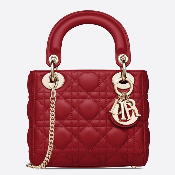 Dior Lady Dior Mini Chain Bag In Red Lambskin