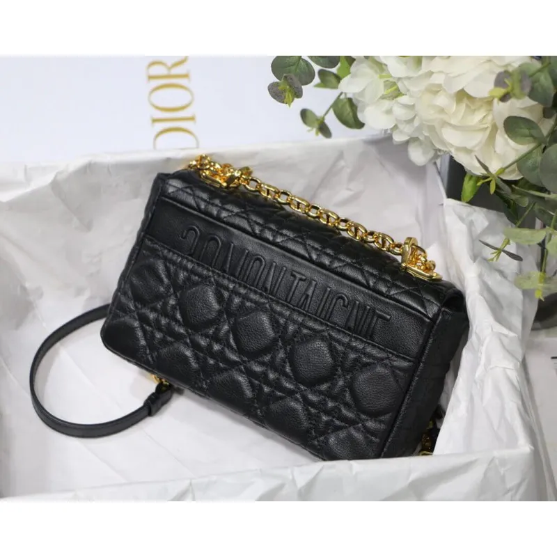 Introducing the exquisite Dior Small Caro Bag in Supple Cannage Calfskin M9241. With dimensions of 8 x 4.5 x 3 inches, this bag is a stunning addition to any collection.