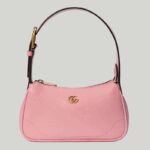 A nod to styles popular during the late 1990s and early 2000s, the Aphrodite line welcomes a new shape with this small shoulder bag, which pairs the essential design with pop colours and the unmistakable Double G hardware, for a sleek yet unexpected look. Here, it’s presented in a soft light pink leather with a gold-toned zip closure.