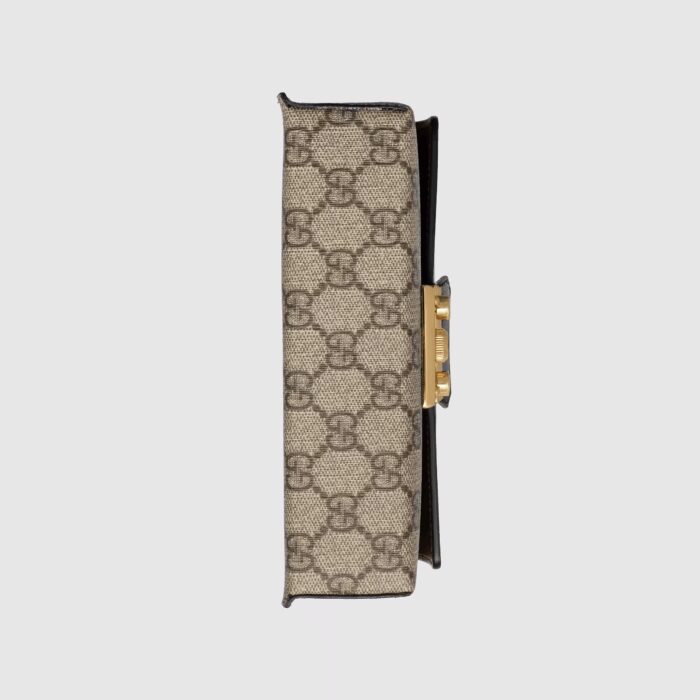 The Padlock is introduced as a mini bag in a mix of leather and canvas in different colors. Defined by its emblematic lock closure, the style is crafted from the House’s monogram canvas and accentuated by a black leather top. Adding to the styles contrasting elements, is a brown leather shoulder strap and handle. Playing with different materials and shades, the House’s designs have a hybrid feel.