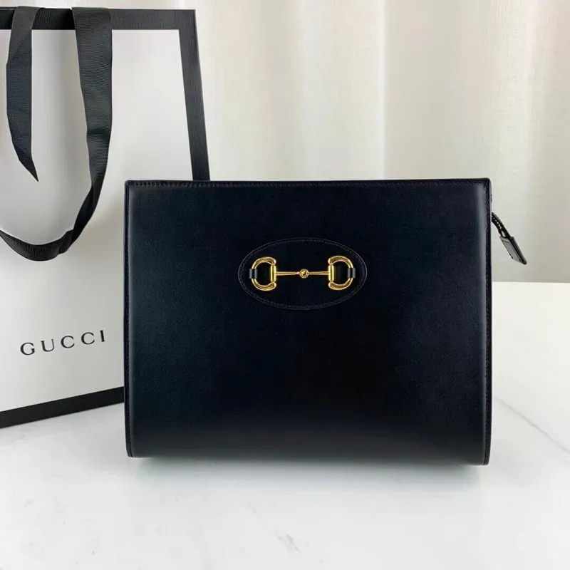 To keep your belongings secure, the pouch is equipped with a reliable zipper closure. With its exquisite design and impeccable craftsmanship, the Gucci 1955 Horsebit-Embellished Leather Pouch is a must-have accessory for any fashion-savvy individual. Purchase yours today and experience the allure of Gucci’s iconic 1955 Horsebit collection.
