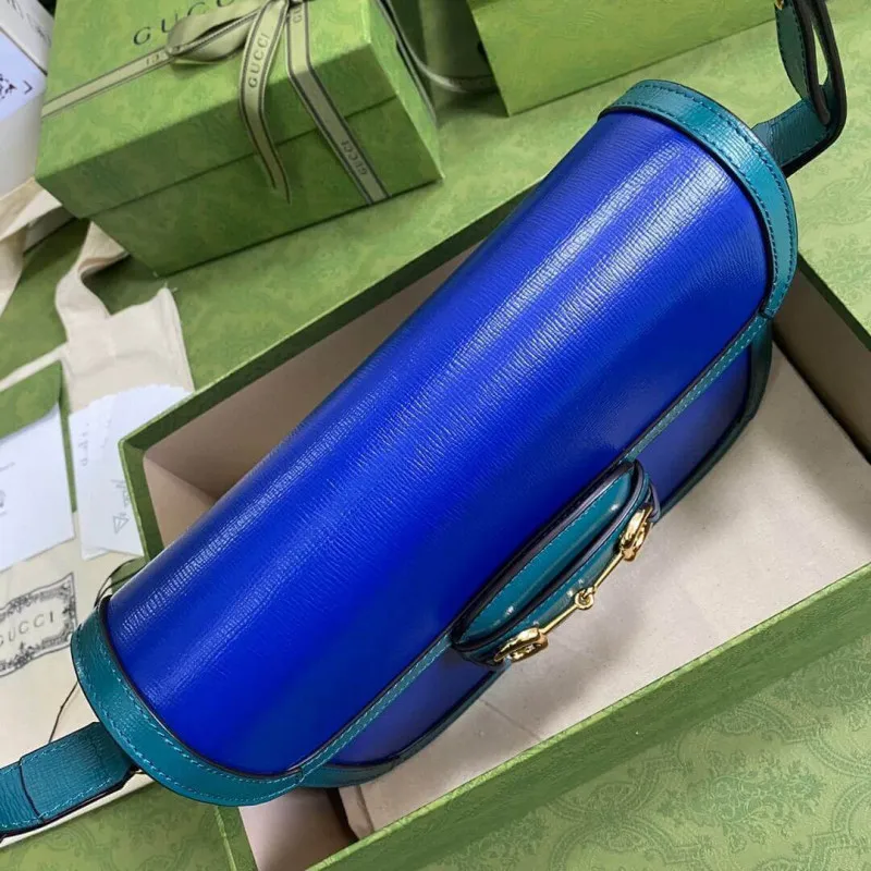 Crafted with attention to detail, this bag is made with blue leather and features exquisite turquoise leather trim. The gold-toned hardware adds a touch of elegance to the design, while the prominent Horsebit detail at the front and half Horsebit details on each side showcase the brand’s intricate craftsmanship.