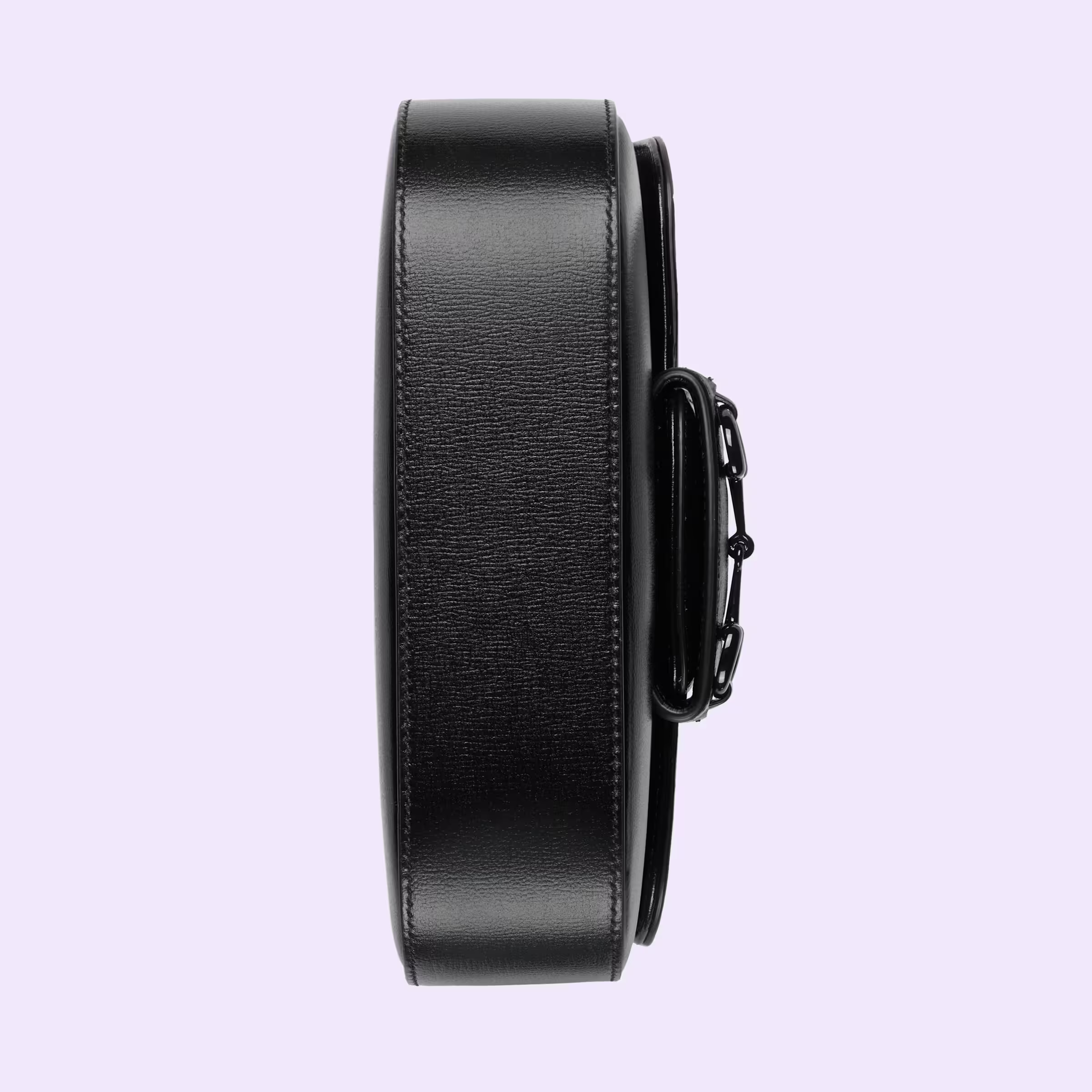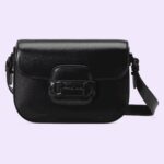 With the same lines and forms first introduced over six decades ago, the Gucci Horsebit 1955 shoulder bag unifies the original details with a modern spirit. The Horsebit, part of Gucci’s genetic code, has been established as one of the most distinctive elements among the House symbols borrowed from the equestrian world. Presented on a small flap shoulder bag, the monotone hardware is paired with black leather and the bag is enriched with two detachable shoulder straps, one is crafted in emblematic green and red Web the other is in leather.