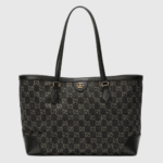 The Ophidia line continues to weave historical elements into the House’s contemporary narrative. Inspired by the original Gucci rhombi motif from the ’30s, the GG pattern is an integral part of the brand’s history. Here, the monogram is presented with a contemporary feel in black and ivory denim.