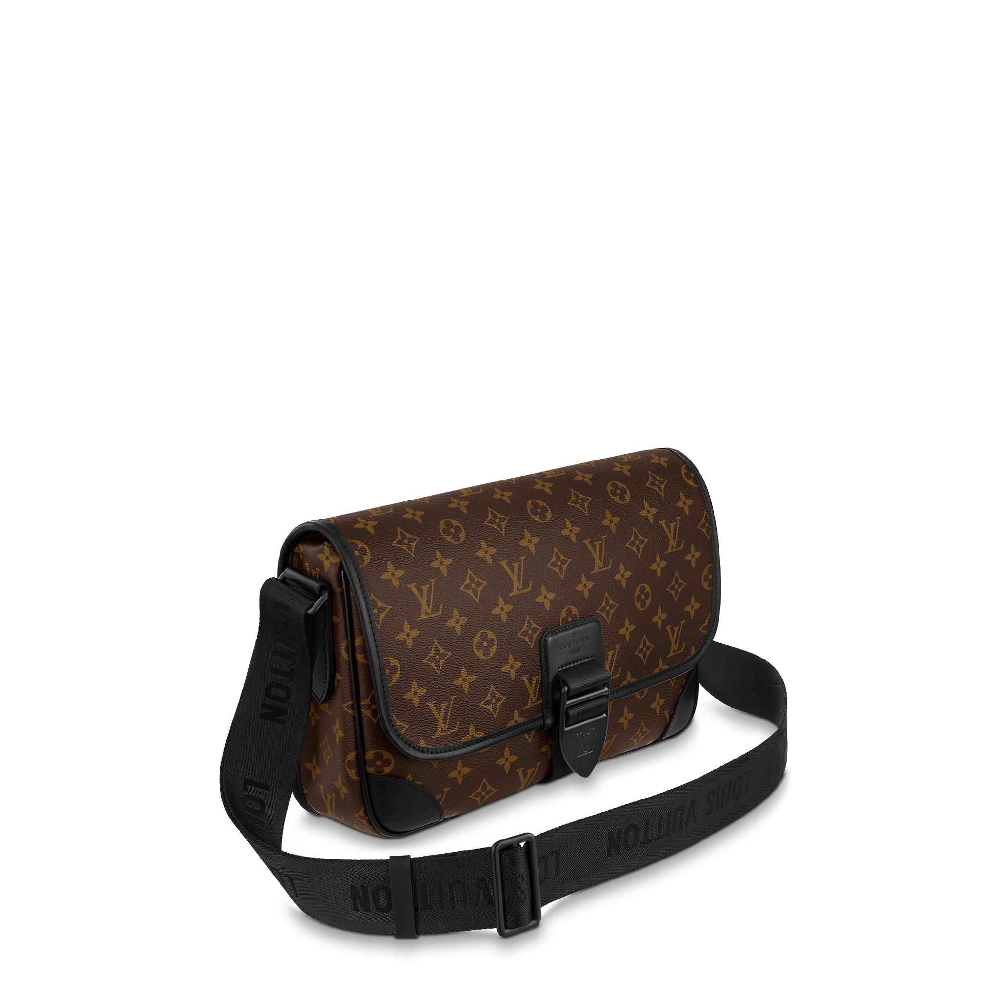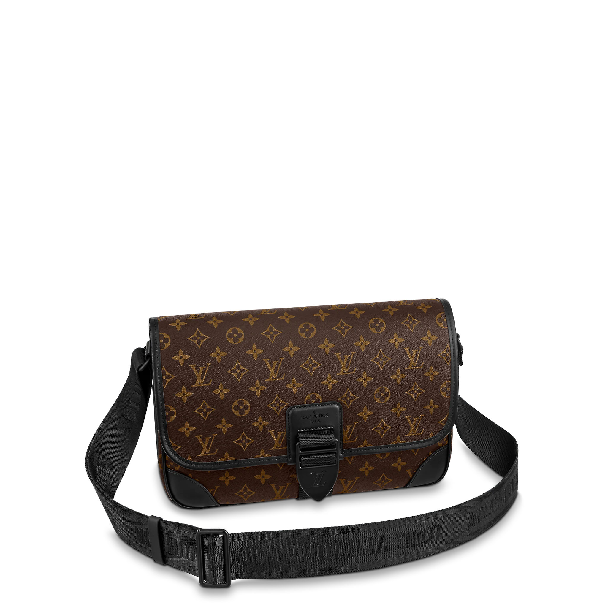 The sophisticated Archy Messenger MM bag is made from Monogram Macassar canvas with black-leather trim. Details such as the adjustable and removable Jacquard strap signed Louis Vuitton and leather corners and piping, make this practical bag – it’s big enough to store a 15-inch laptop – eminently stylish.