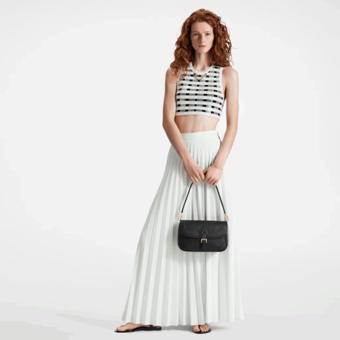 The Diane satchel is made from Monogram Empreinte, the Maison’s signature embossed leather. Fitted with a detachable leather strap for shoulder or hand carry, as well as a wide and removable jacquard cross-body strap with a woven “Louis Vuitton”, this versatile bag can be styled in chic or sporty fashion, to match an ensemble or a mood.