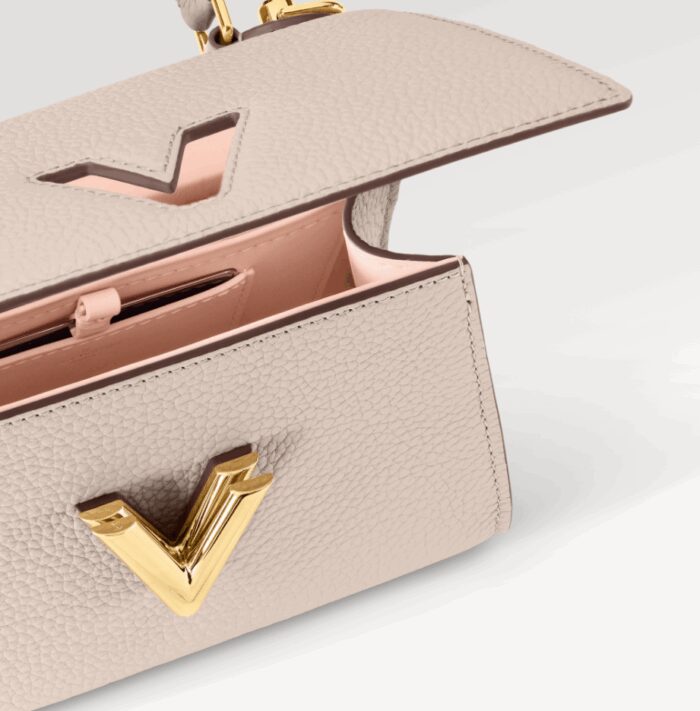 The Twist One Handle handbag is reinterpreted in a BB size. This small bag in deep-dyed Taurillon leather comes with a single top handle, and iconic LV Twist lock on its flap. It’s lined with leather in a contrasting color for an discreet touch of style. The Twist One Handle offers cross-body, shoulder and hand carry.