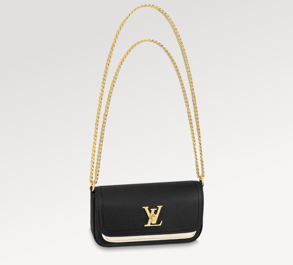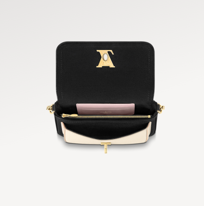 The Lockme Tender Pochette is crafted from grained calf leather. Inspired by the Lockme Tender bag, it is notable for its rounded flap and contrasting front pocket, which can hold a smartphone. Refined gold-tone hardware completes this modern, day-to-evening style: the signature LV turn-lock of the Lockme line and a sliding chain for shoulder or cross-body carry.