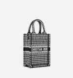 MINI DIOR BOOK TOTE PHONE BAG Black and White Micro Houndstooth Embroidery (13 x 18 x 5 cm)