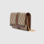 A classic combination of the House’s most recognizable elements—the GG motif and Web stripe—the world of Ophidia continues to evolve, incorporating new shapes and silhouettes. The wallet has a compartmentalized construction and a removable chain strap that gives the structured shape dual functionality, allowing it to be worn as a mini bag.