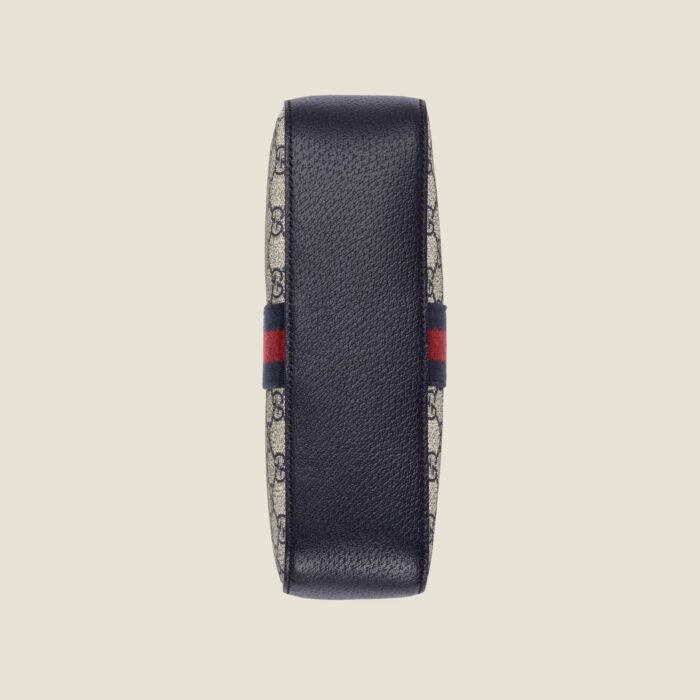 Mirroring the material’s historic origins, GG Supreme is introduced in a timeless mix of blue and beige for Gucci Love Parade. The canvas has come to the front of each collection decade after decade to become a hallmark of the House. Here, the classic palette defines this Ophidia camera bag.