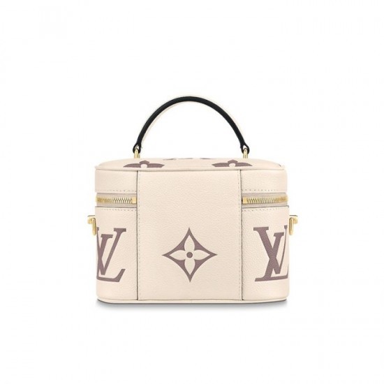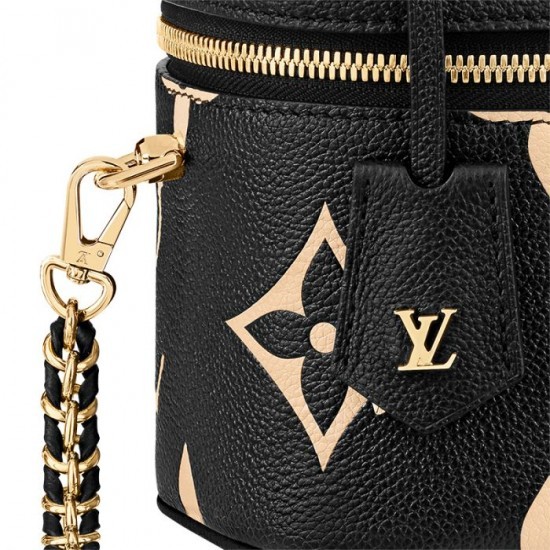 Inspired by the Monogram Nice Vanity, the Vanity PM handbag in Monogram Empreinte leather is a fashionably small bag with a distinctive shape. It is made from grained leather, embossed with the Giant Monogram motif. Its tassel zip pulls, ladylike top handle, and removable strap make it versatile and strikingly stylish.