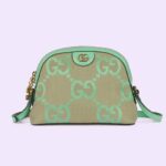 The Ophidia shoulder bag has a domed shape that recalls vintage designs. The jumbo GG explores a new, maximalist version of the historic monogram, animating this small shoulder bag in camel and mint.