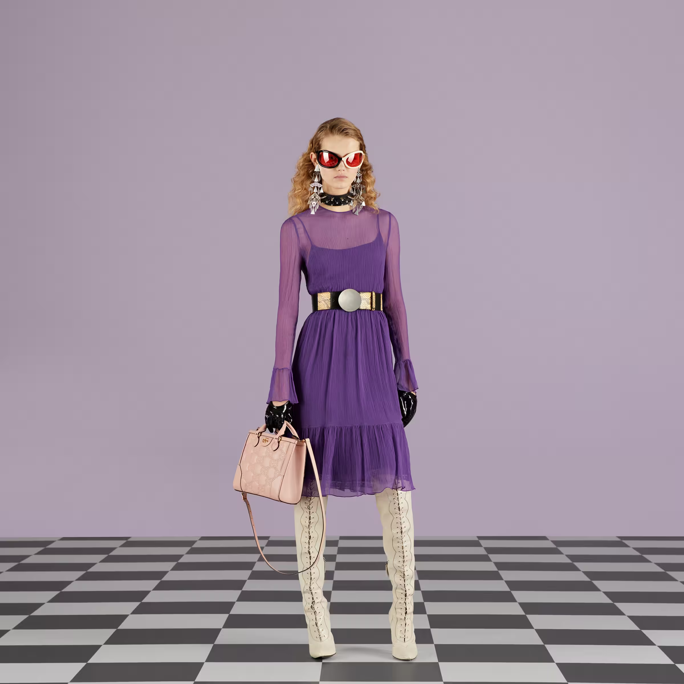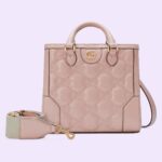 Matelassé leather is a signature material of the House, thanks to its super soft finish. The textured GG motif defines a selection of small leather accessories, including this pink top handle mini bag. The Double G hardware decorates the front, continuing the logo feel of the design.
