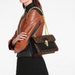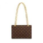 The Victoire chain bag pairs Monogram canvas with smooth colored leather for a sophisticated day-to-evening accessory. The golden clasp is modeled on the lock of classic Louis Vuitton luggage, while the sliding chain strap echoes the Malletage print that lined those historic trunks. Large enough to fit a long wallet, the bag can be worn cross-body or short-shoulder style.