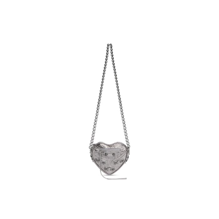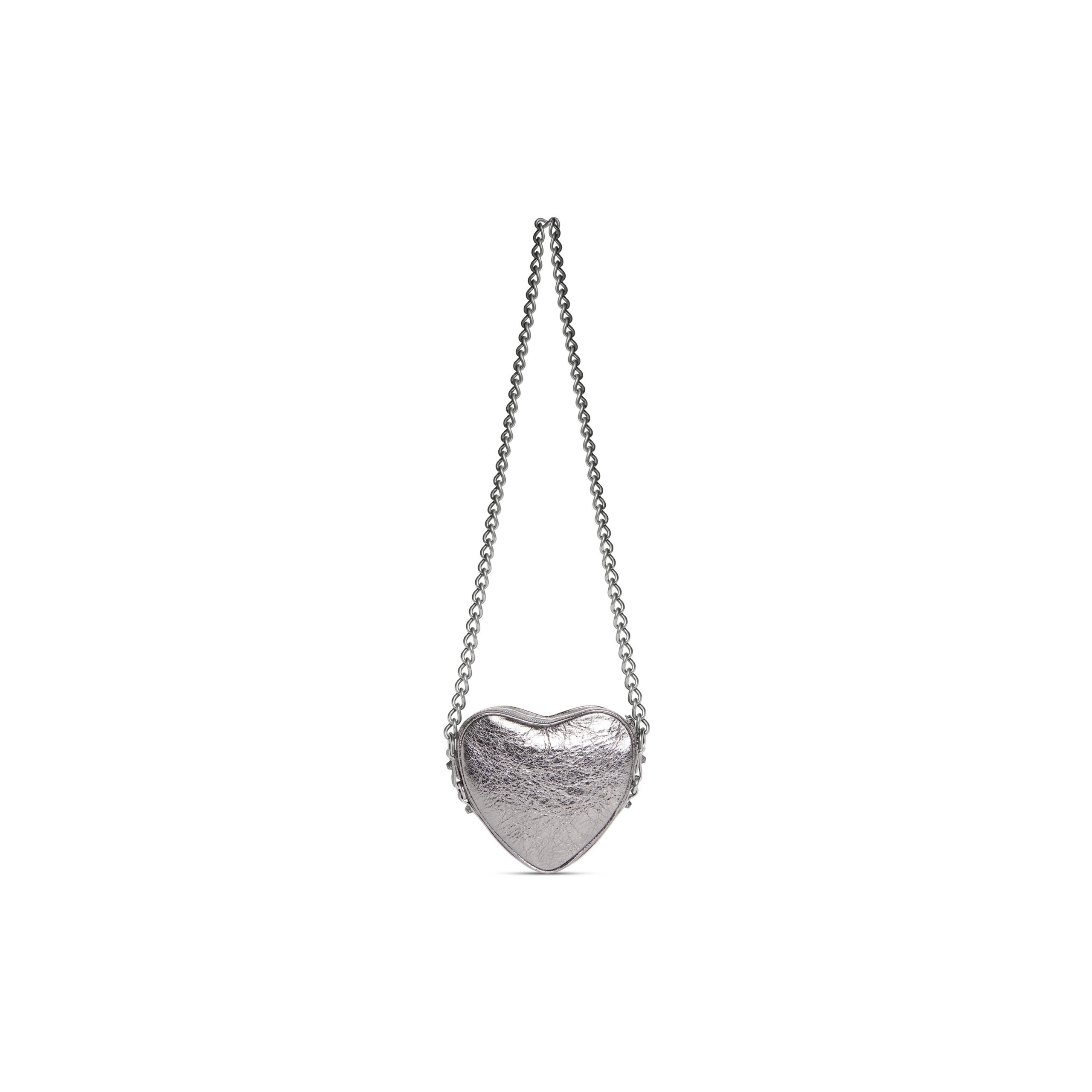 WOMEN’S LE CAGOLE HEART MINI BAG METALLIZED IN SILVER