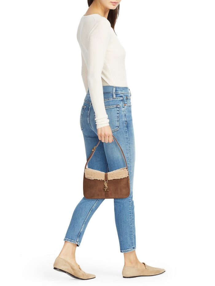 YSL Le 5 a 7 Hobo Bag in Suede and Shearling